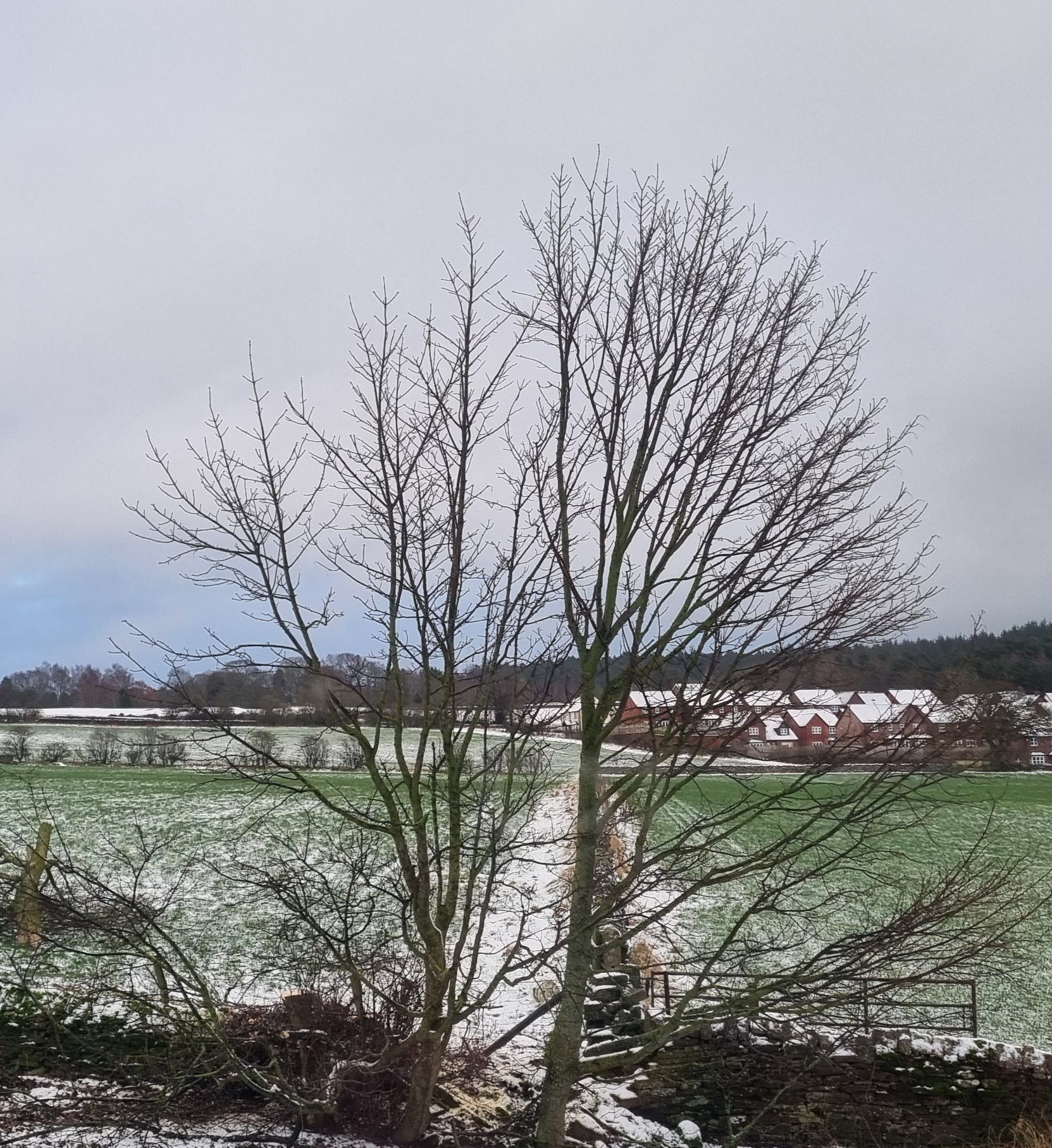 I was unexpectedly working from home due to the wintry weather, and was really excited to be heading out on a snowy lunchtime walk with Bomber, only to turn up the road and see that a whole line of trees that I love had disappeared. Trees that I greet each morning and feel incredibly grateful to have on my doorstep. It was so surreal and painful.